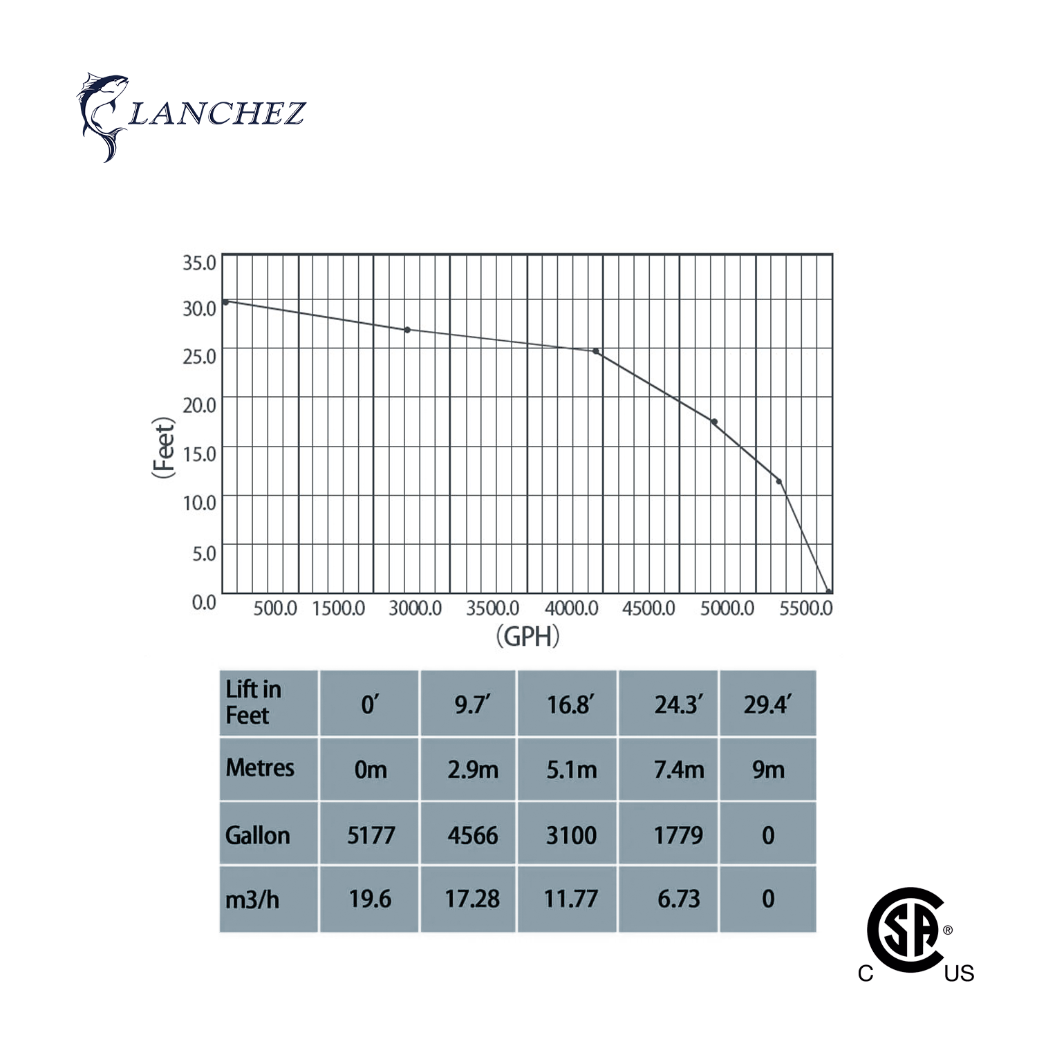 Altura máxima de elevación de 30 pies para un drenaje eficaz incluso en zonas profundas.